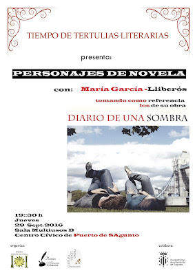 Es evidente que las personas que hayan leído la novela podrán aprovechar mejor la charla "Personajes de novela", pero no es condición indispensable. Hablaré de cómo se construye un personaje, qué elementos hay que tener en cuenta para que sea creíble, cómo llevar a cabo su descripción y tomaré como referencia los de mi última novela publicada, "Diario de una sombra". Espero que la charla resulte útil para aquellos que quieran lanzarse a la aventura de escribir y, también, para lectores exigentes que gusten de novelas donde la hondura psicológica de los actores principales resulte determinante para mantener la tensión lectora.